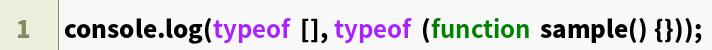 配列の `typeof` は `”object”`、関数の `typeof` は `”function”` を返します。