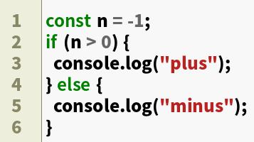 `n` は `-1` で `n > 0` は偽のため、`else` 節が実行され `”minus”` が出力されます。