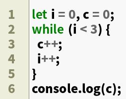 `i` が `0,1,2` の3回ループし、そのたびに `c` をインクリメントするため `3` が出力されます。