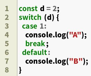 `d` は `2` のため `case 1` に一致せず、`default` が実行され `”B”` が出力されます。
