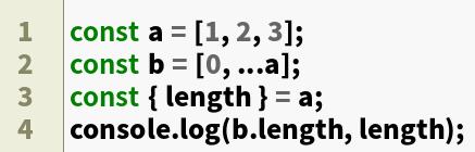 スプレッド構文で `a` の前に `0` を追加しているため、`b.length` は 4、元の `a.length` は 3 のままです。
