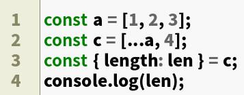 配列 `a` をスプレッドして末尾に `4` を追加したため、新しい配列 `c` の長さは 4 です。