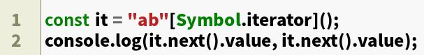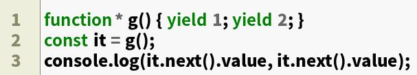 `next()` を2回呼ぶと、最初は `1`、次に `2` が取り出されます。